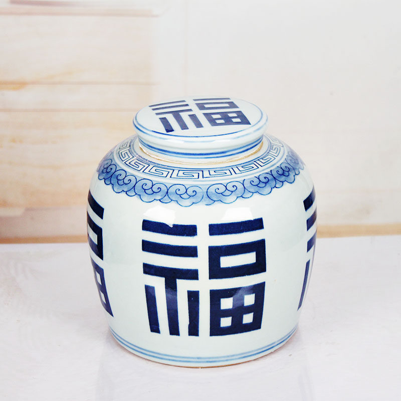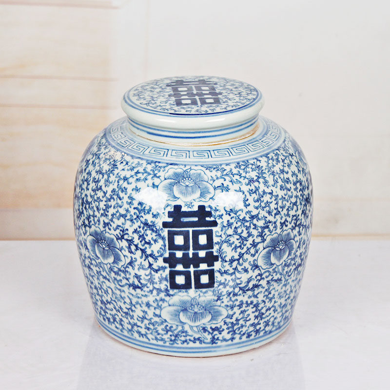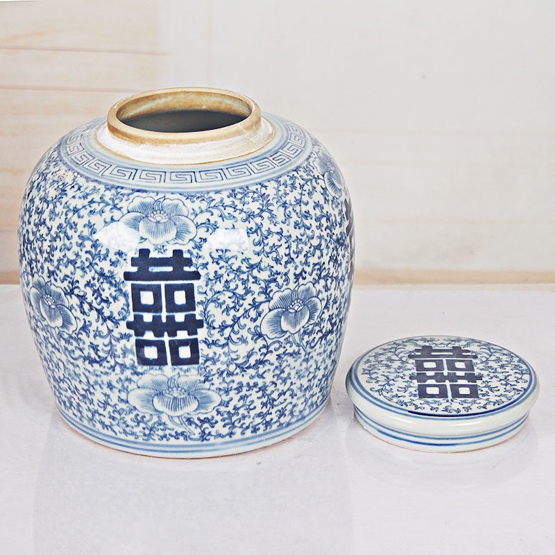 Late Qing blue and white porcelain wrapped with branches and happy characters big jar antique porcelain antique home decoration Jingdezhen ceramics