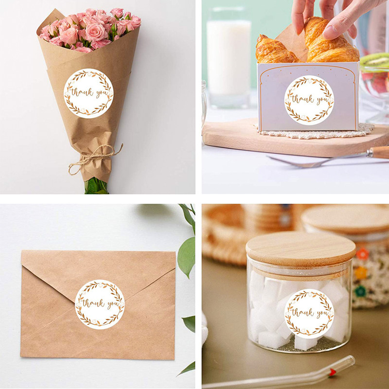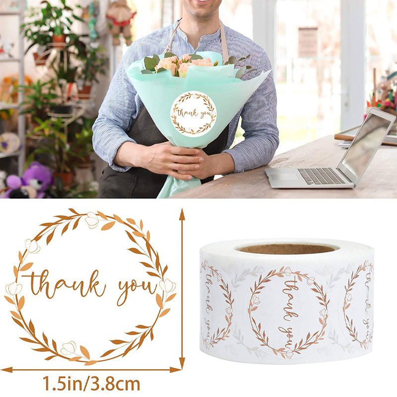 500 Sheets Roll Tulip Wreath Thank You Stickers 1 5" Round Label Gift Wrapping Envelope Closure Sticker