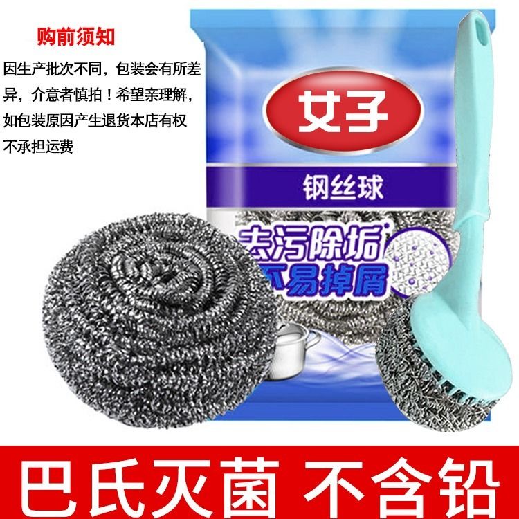 Steel wire ball cleaning ball stainless steel No rusty kitchen Supplies Baise cloth handle Brushed bowls Brushed pan