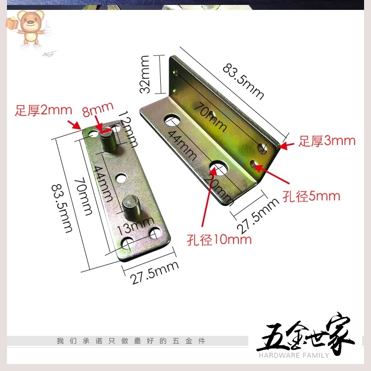 Thickened Bed Hinge Furniture Super-connected piece solid wood bed furniture fastener 4 inch right angle bed bolt bed frame Sub-stainless steel