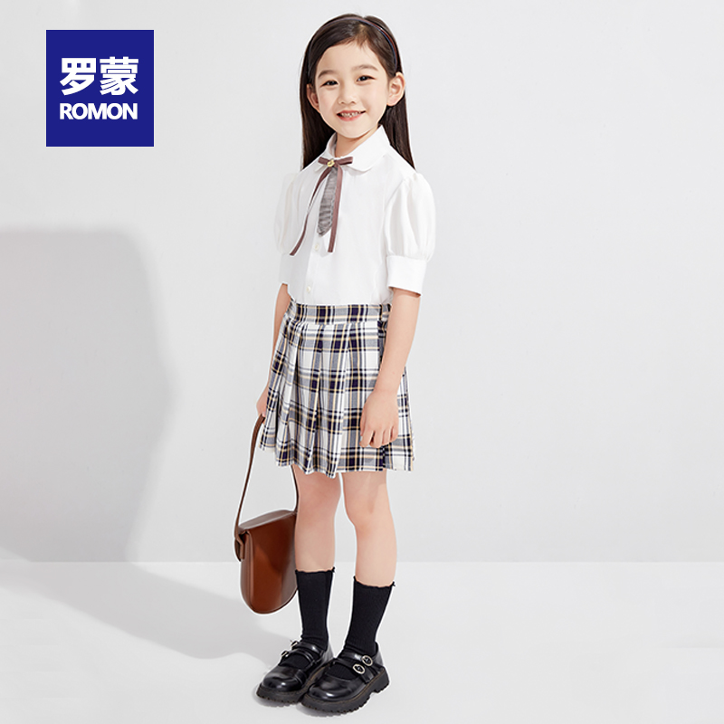 Roemon Girl's Half Body Dress New Foreign Pie Short Skirt Suit Summer Children Short Sleeve JK Uniform Thyme Skirt Summer Dress Woman