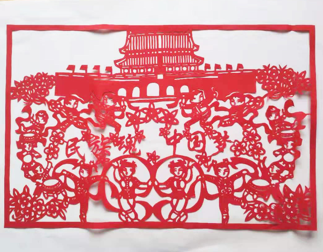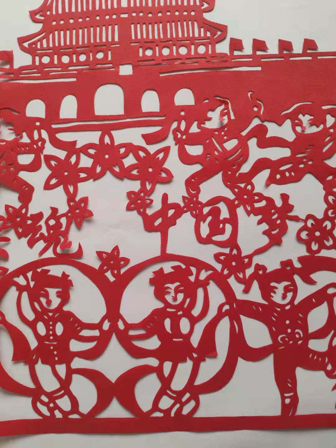 National soul Chinese dream Red explosion paper-cut window grille Handmade glass decoration red sticker celebration large