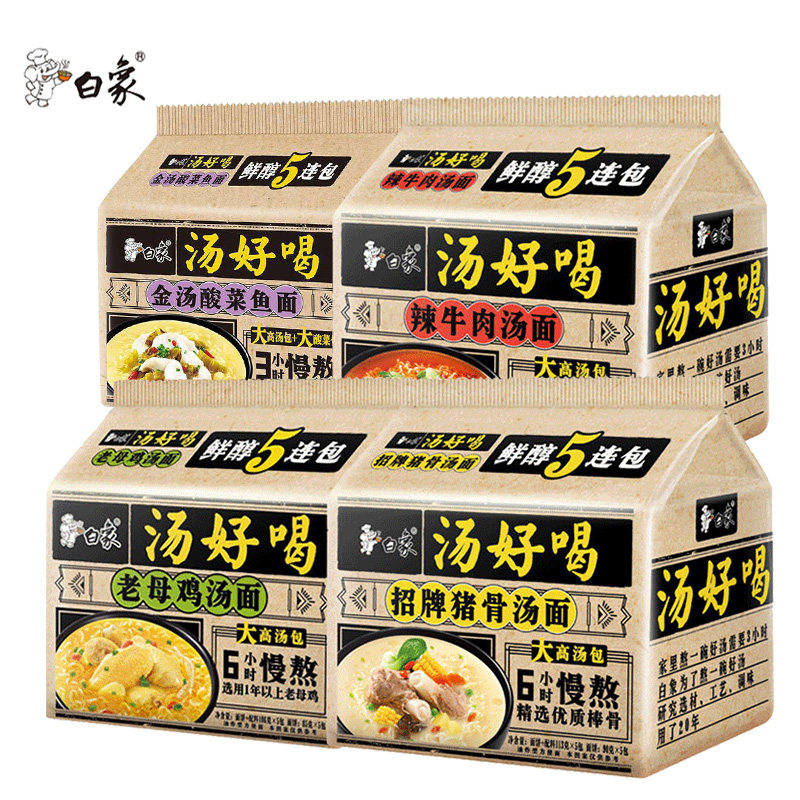 White elephant soup delicious instant noodles 5 consecutive packs of pickled fish Old Hen spicy beef soup noodles instant noodles whole box