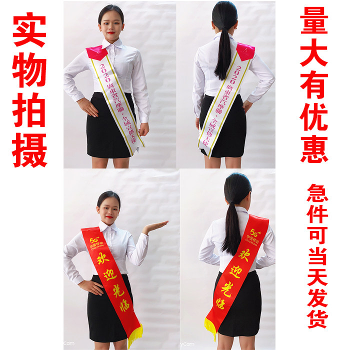 Custom colored satin etiquette ribbon welcome ribbon beauty pageant etiquette belt opening ribbon ribbon shoulder strap cutting ribbon