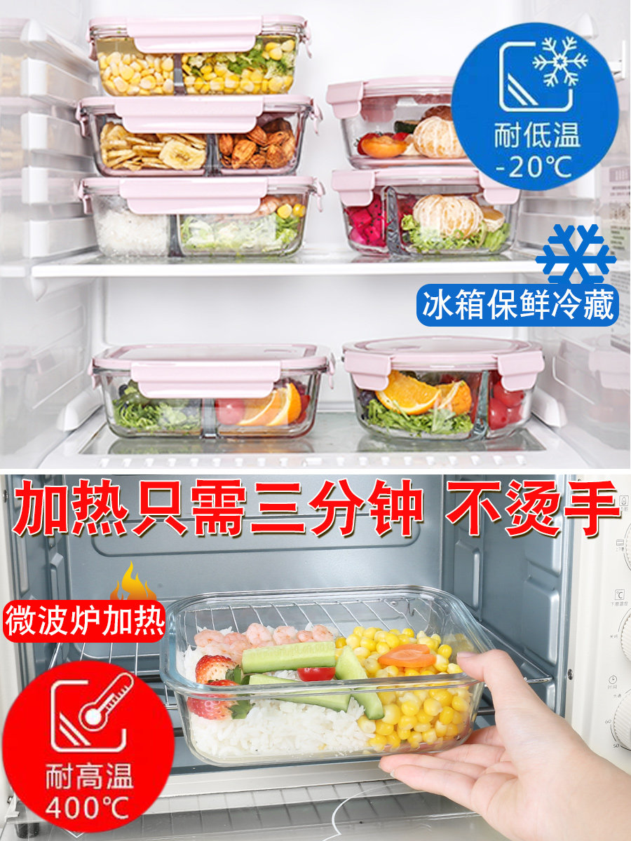 Glass refreshing box Refrigerator special bowl Food containing box microwave heating lunch box Lunch Box Office Meal Kit