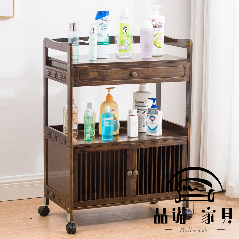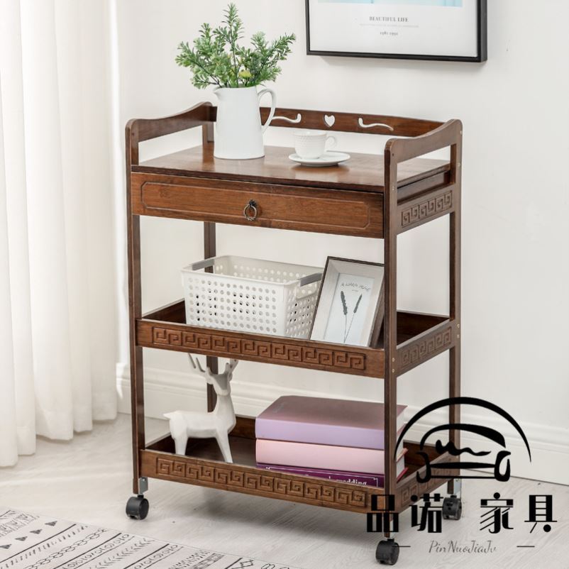 Nordic storage cabinet three-story bedroom solid wood trolley rack coffee table home with wheel hairdressing corner table wine cart