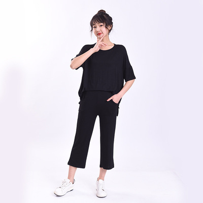 Large size modal 300 short-sleeved seven-point pajama pants female 240 loose 200 catties fat mm outer wear suit home clothes