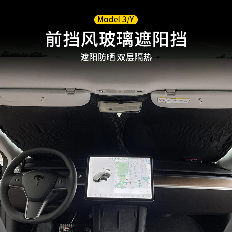 Suitable for Tesla Model3 Y special front sunshade double-layer sunscreen heat insulation curtain front windshield hood