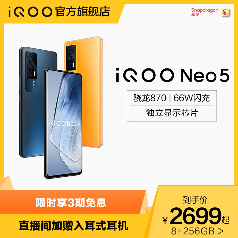 (3 interest-free live room gift backpack) vivo iQOO Neo5 Qualcomm Snapdragon 870 5G game love cool new new mobile phone official flagship store iqooneo5