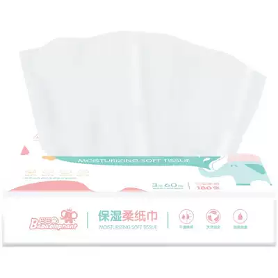 Baba Elephant baby moisturizing soft tissue Bao Ma special wood pulp facial tissue printing 5 packs a mention of 180 sheets per pack