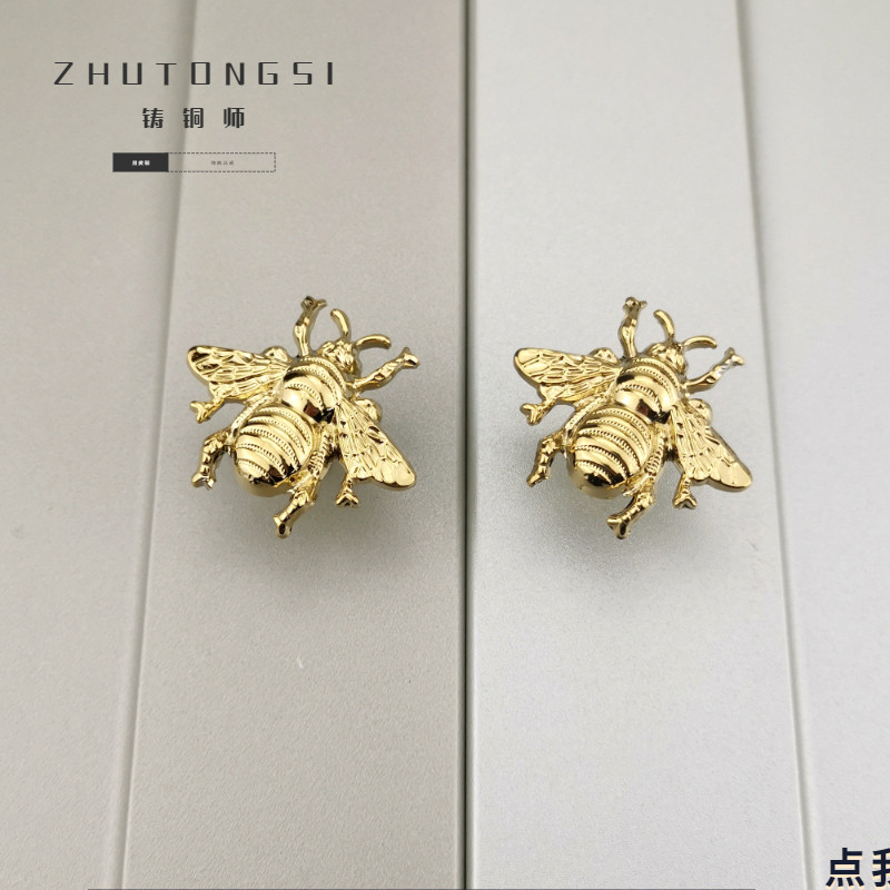 Cast Bronze Division American Brass Personality Creativity Small Bee Pure Copper Handle Wardrobe Shoe Cabinet Drawers Golden Light Lavish Handle