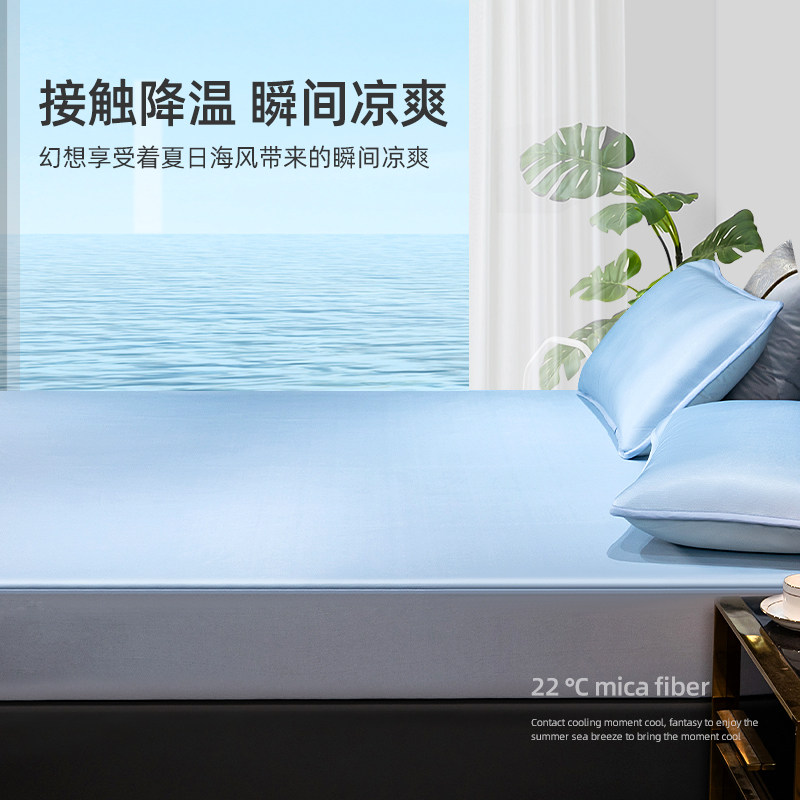 Size can be customized for details contact customer service nano mica ice silk mat color cloud ash dirt-resistant bed hat❤Send pillowcase antibacterial anti-mite color cloud blue stain-resistant bed hat❤Send pillowcase antibacterial anti-mite pure gray clear
