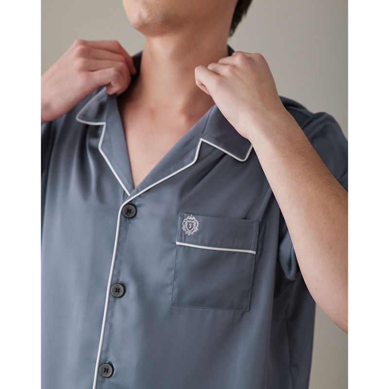 Finten Ice Silk Sleepwear Men's Summer Thin Men's Short Sleeve Shorts Male daddy emulated Silk Home Suits Suit