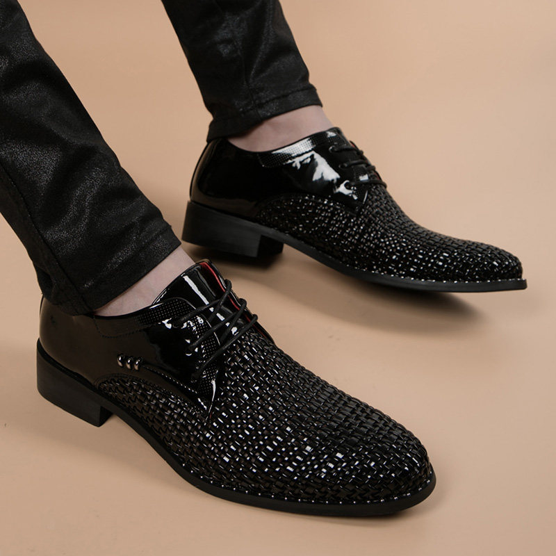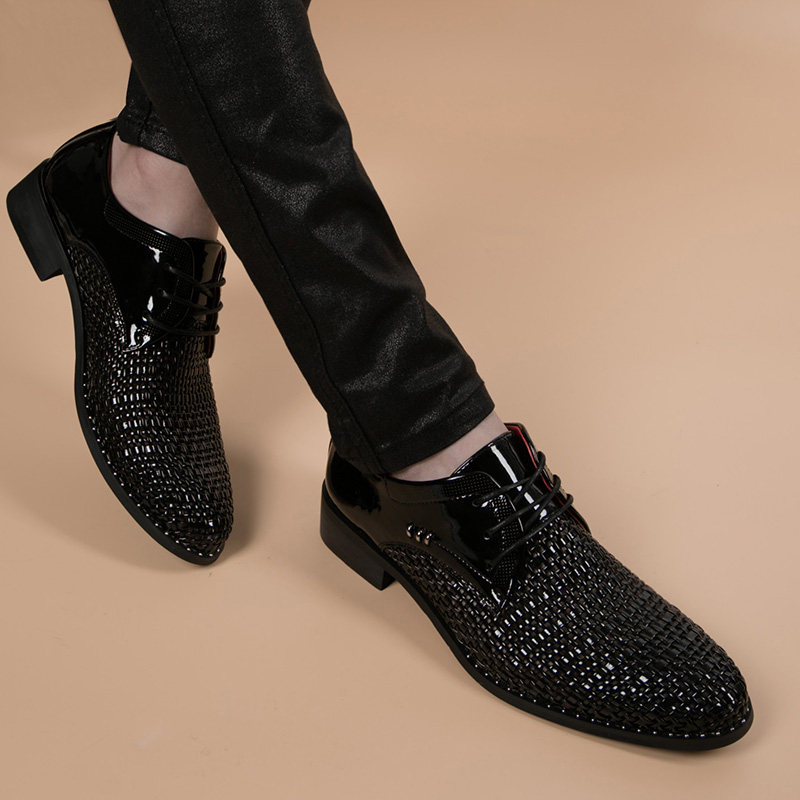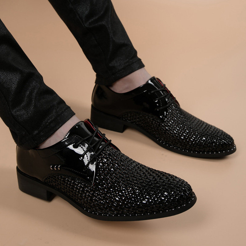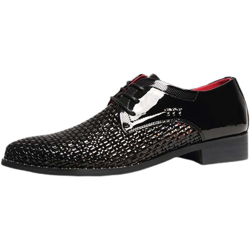 Summer Leather Shoes Men's Youth Fashion Trends Woven Breathable Men's Shoes Heightened Korean Version Business Positive Dress Hollowed-out Sandals Men