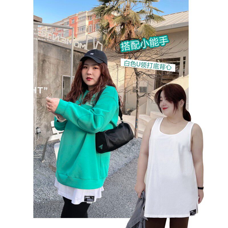 Muzi ideal new large size camisole female fat mm white large U-neck mid-length side slit vest 200 catties