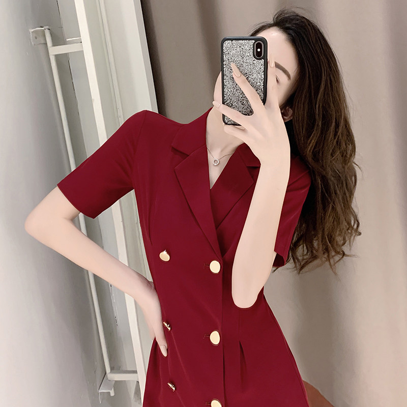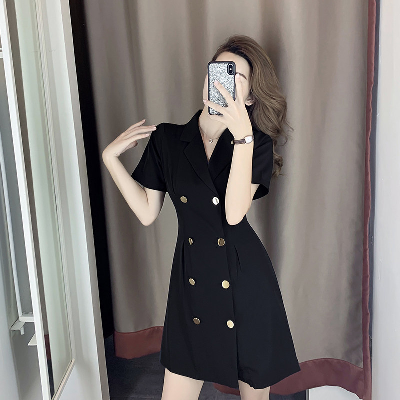 Sandro Moscoloni2022 Summer new Korean version with slim double-row buttoned black suit foreign dress