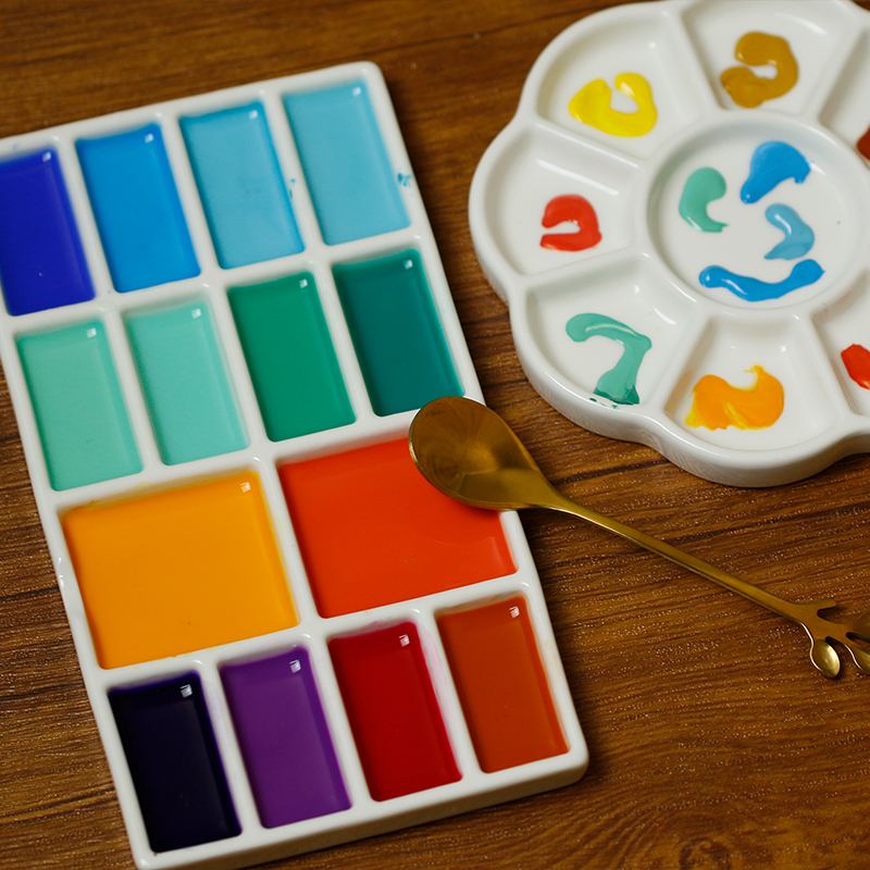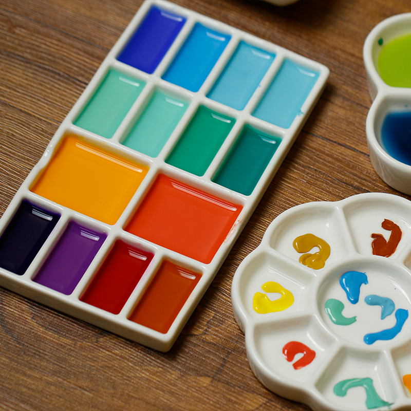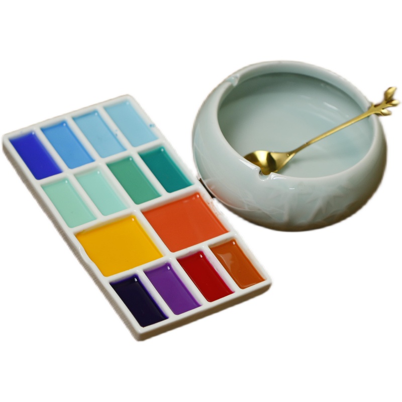 High-end Chinese painting palette ceramic water powder watercolor pigment special palette plum blossom art pure white color box