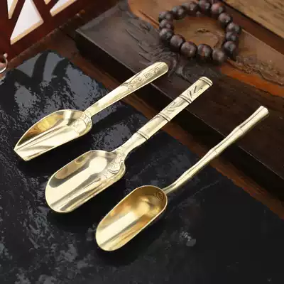 Brass Tiandaochouqin teaspoon Brass bamboo four-section teaspoon Brass bamboo leaf teaspoon Brass Tiandaochouqin teaspoon Tea clip Brass Tiandaochouqin teaspoon Tea knife Brass Tiandaochouqin teaspoon tea fork