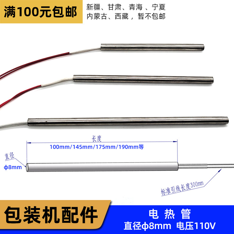 Vertical packaging machine heating pipe diameter φ8mmX145 175 190 voltage 110V electric heating rod