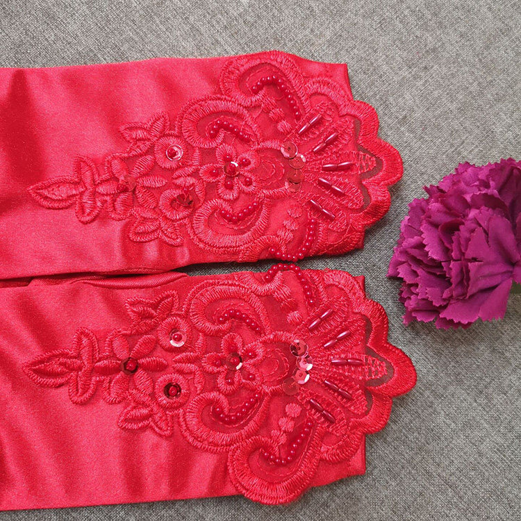 Beaded Short Gloves White Beaded Short Gloves Red Red Velvet Gloves