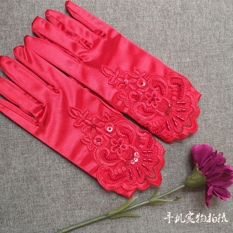 Short wedding dress bride female white satin cheongsam wedding dress red wedding lace fingered Xiuhe clothing short gloves