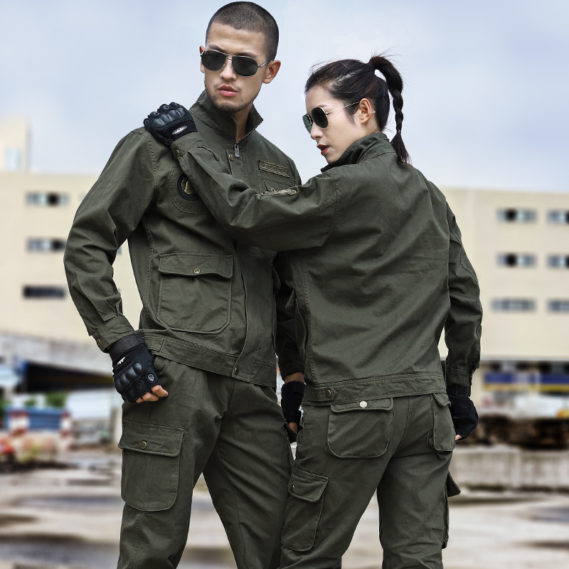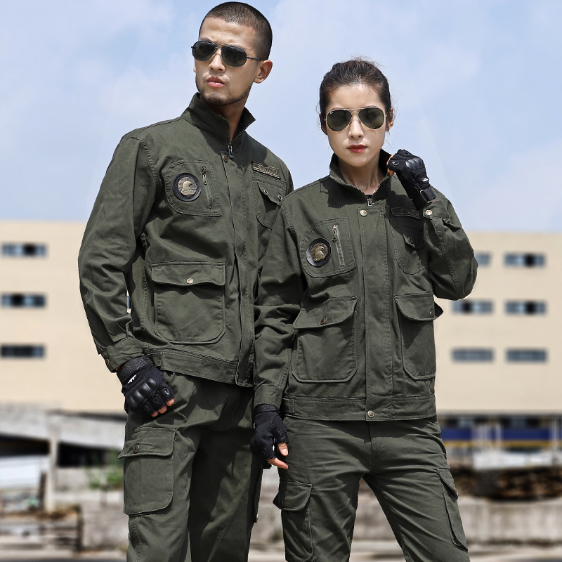 Cotton army green labor protection clothing overalls suit men's autumn and winter wear-resistant camouflage clothing thickened loose multi-bag tooling women