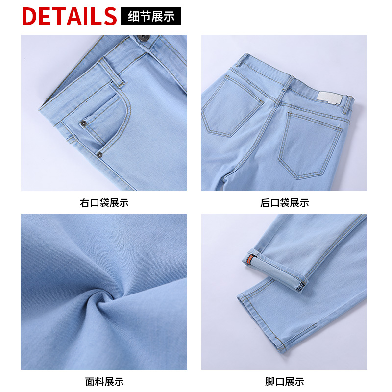 Summer light color jeans Men's body Smoke Pipe Pants Slim Fit Spring Autumn Small Straight Cylinder 90% Korean Version Trend Slim Fit Pants
