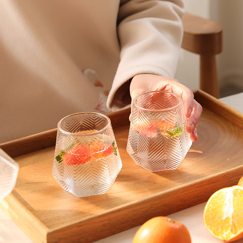 04 Diamond shaped cold water bottle 1500ML + yellow walnut tray + 2 cups