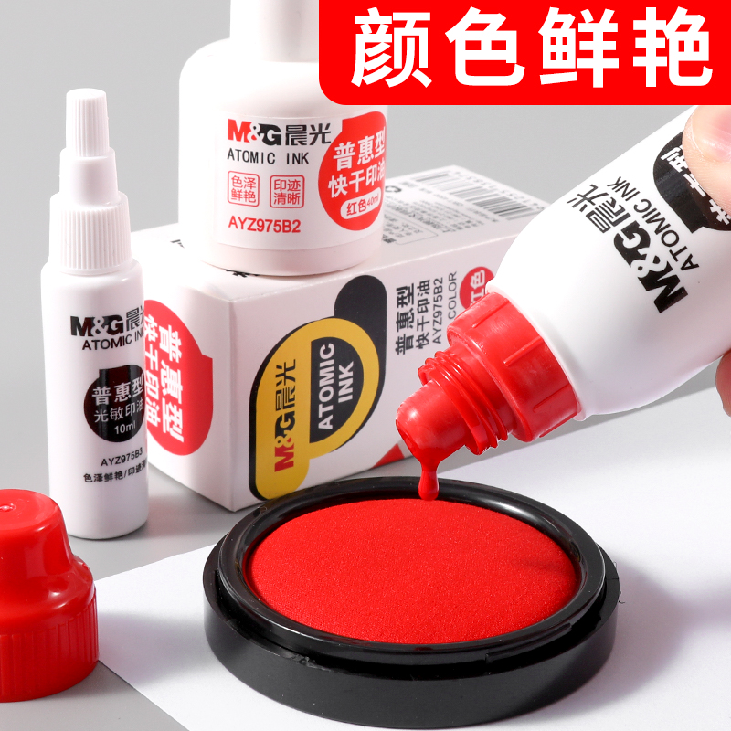 10 bottles of morning light quick dry printed oil red seal print mud speed dry printing table supplement ink red printing seal oil office Non-atomic nail second dry octopus seal large capacity 40ml