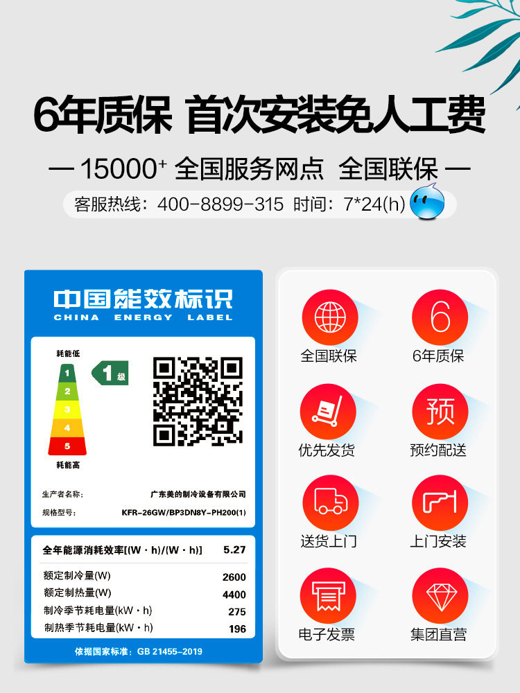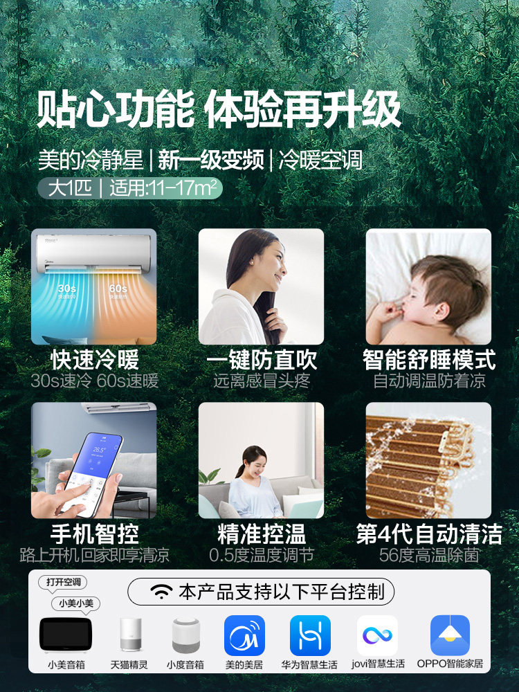 Midea's new first-level energy efficiency calm star second generation large 1 horsepower inverter air conditioner wall-mounted air conditioner household 26PH200 smart home appliances