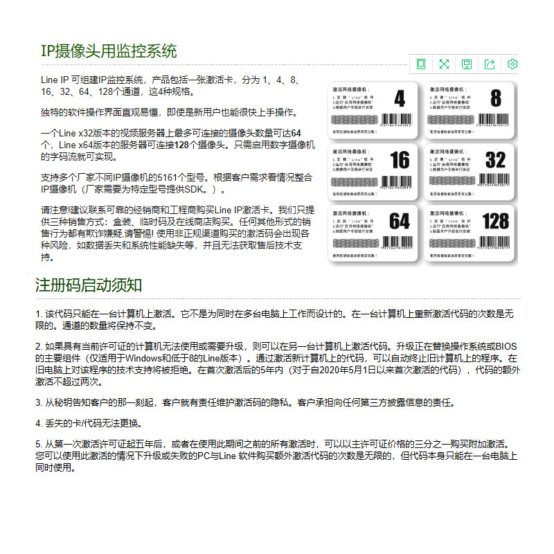Line IP Universal IP Camera Software Activation Code 1CH 4CH 8CH 16CH 32CH 64CH 128CH