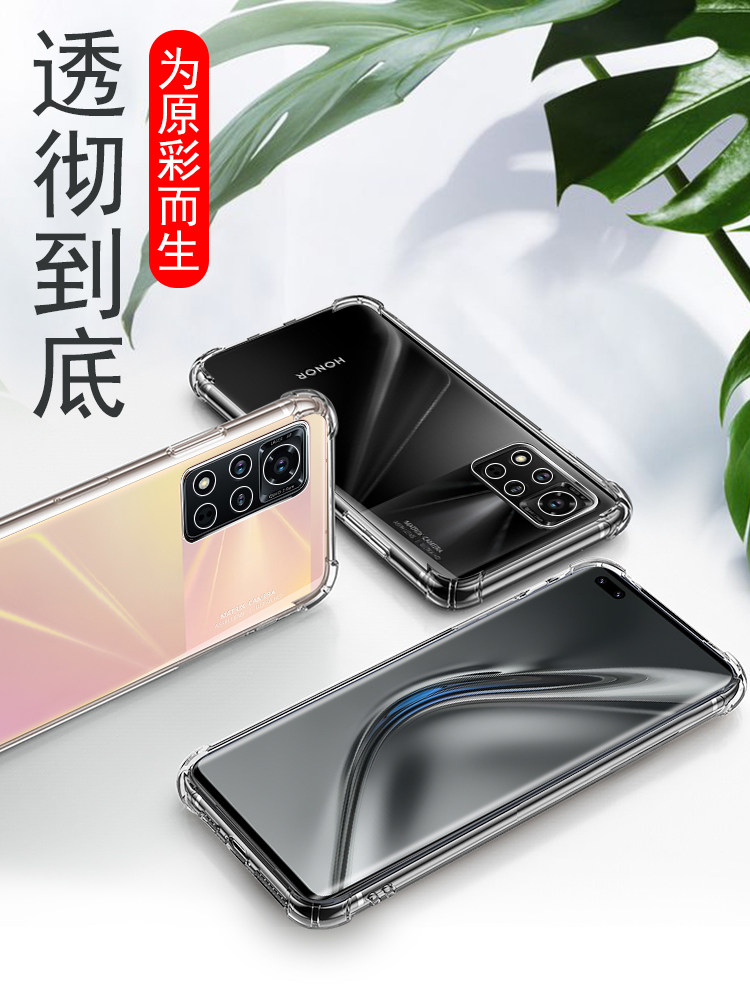 Huawei Honor v40 mobile phone protective shelterscreen honor light extravagant version New pint view Four corner airbags anti-fall transparent lens full-pack silicone yok-an10 protective sleeve 5g curved screen v4