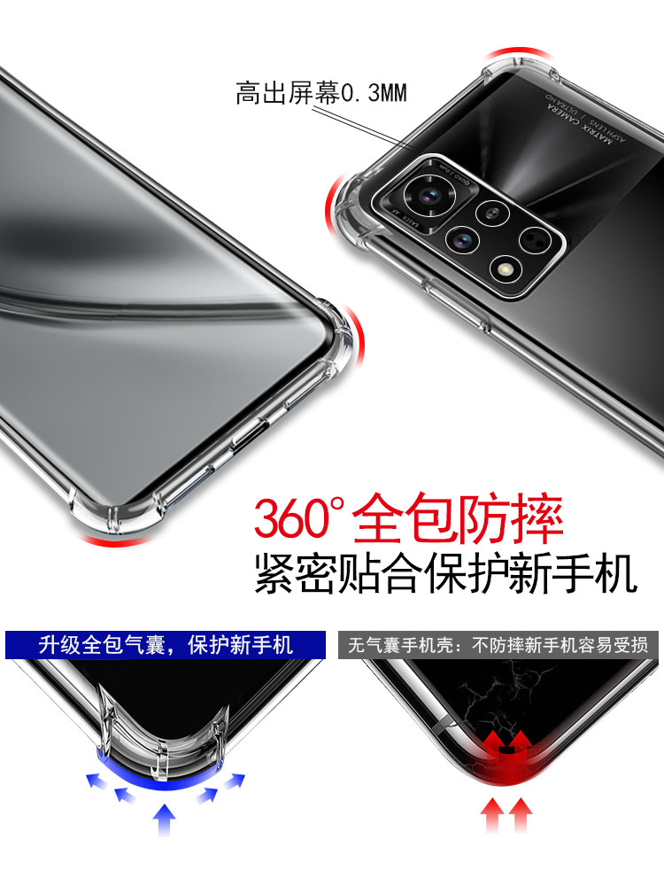 Four-corner air bag anti-fall shell hole position precision light and thin transparent installation easy