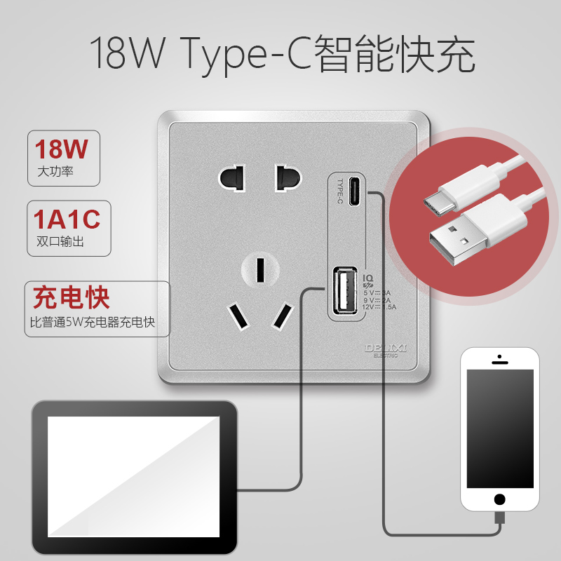 Deforce West Switch Socket Panel Home Porous Wall Socket 86 Type USB Five Hole Socket Official Flagship Store