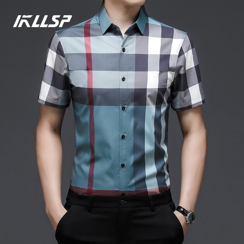 European station summer new 2022 casual plaid shirt men's striped formal dress light luxury high-end short-sleeved inch shirt