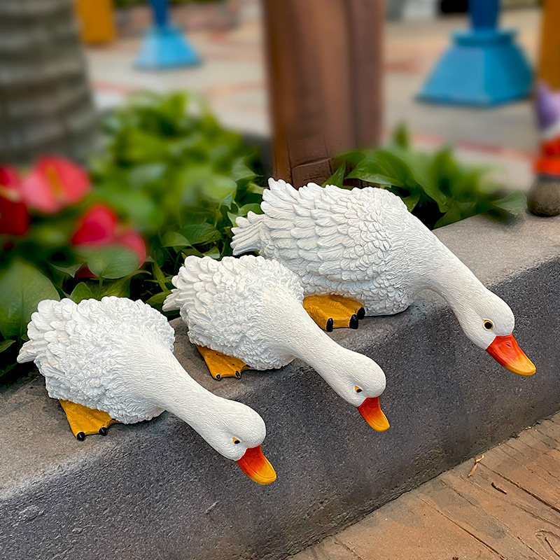 Garden decoration ornaments Courtyard outdoor pond pool fish pond simulation animal white drinking duck resin model