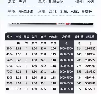 Guangwei bamboo mountain big material carp Shadow Peak 6h ultra-light super hard 19 Tiaohu Lake Reservoir Battle Green grass black pit big object fishing rod fishing rod