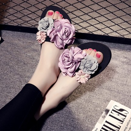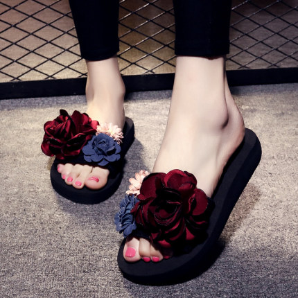 Special Cabinet New Thick Bottom Sandals Women Summer Handmade Slippers Fashion Flat Bottom Line Slippers Korean Version Flowers Beach Shoes