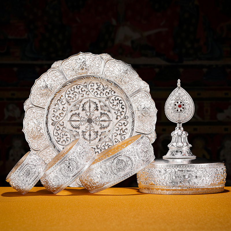 Foot silver S990 pure silver Manzal disc full set of pure silver plated 24k gold Manzal disc repair disc handmade flower with depository