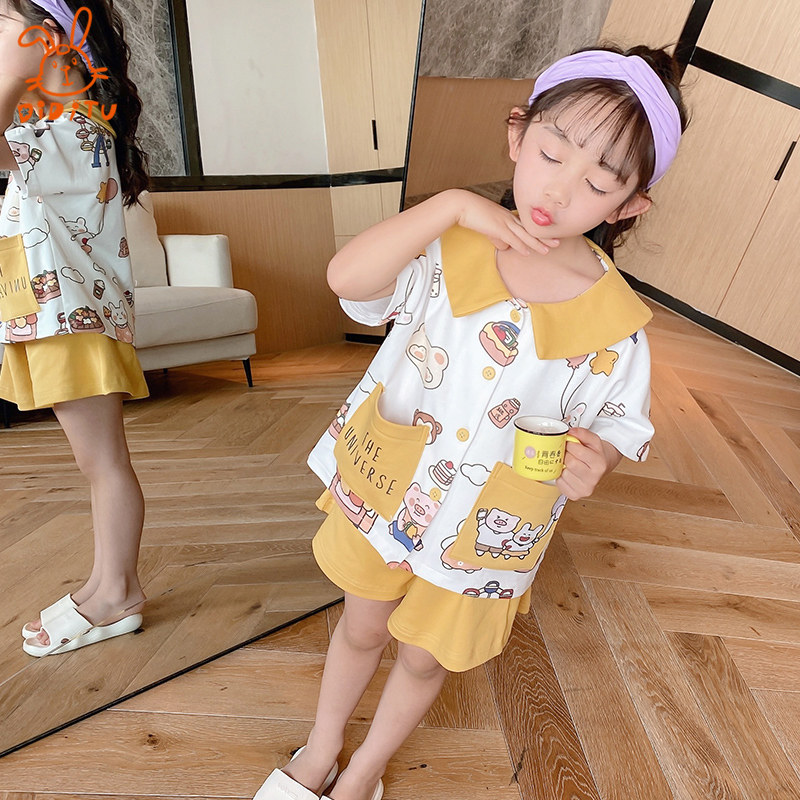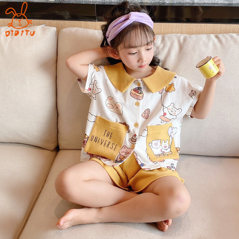 Girl Sleepwear Summer Short Sleeve Pure Cotton Suit Cute Princess Sweet girl CUHK Baby Boy Home Conserved Thin