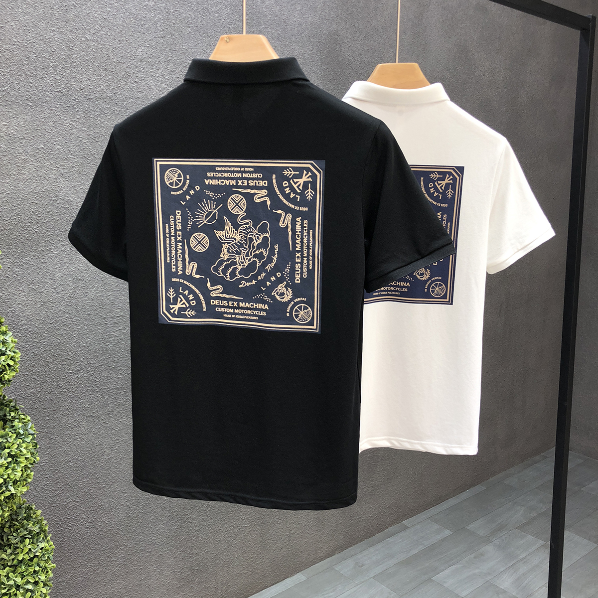 High quality summer Polo shirt men's short sleeve tide fashion print with T - shirt 2021 tide male upper half sleeve