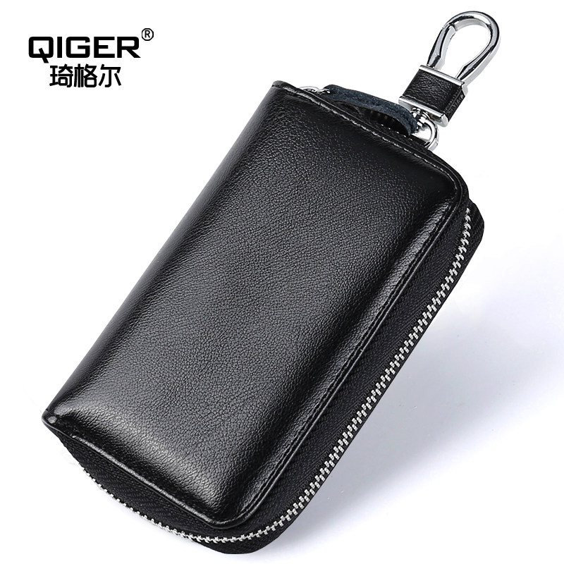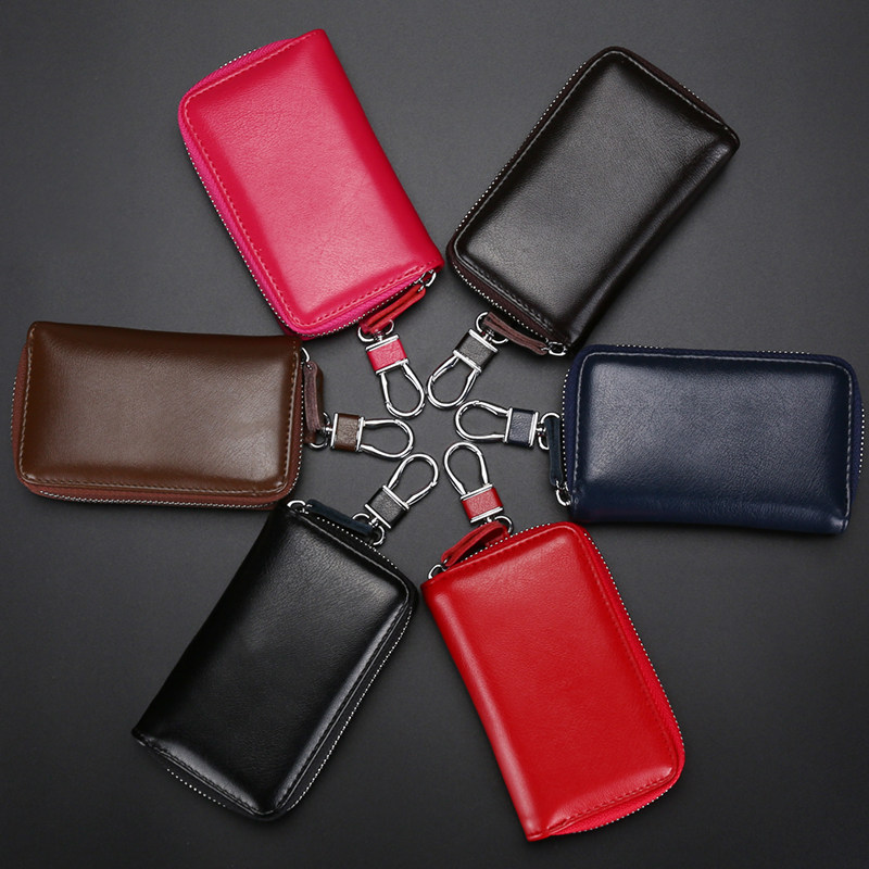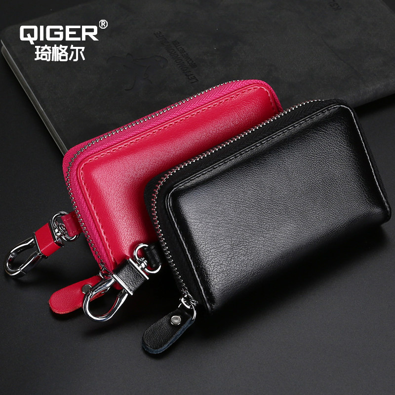 Minimalist large capacity key bag multi-position male waist hanging real cow leather female car multifunction home pull-chain key bag clasp