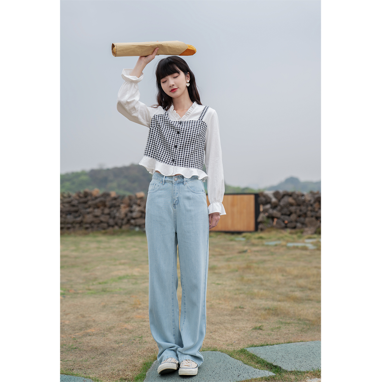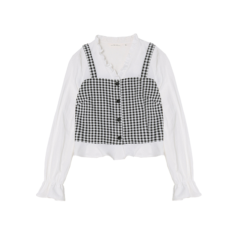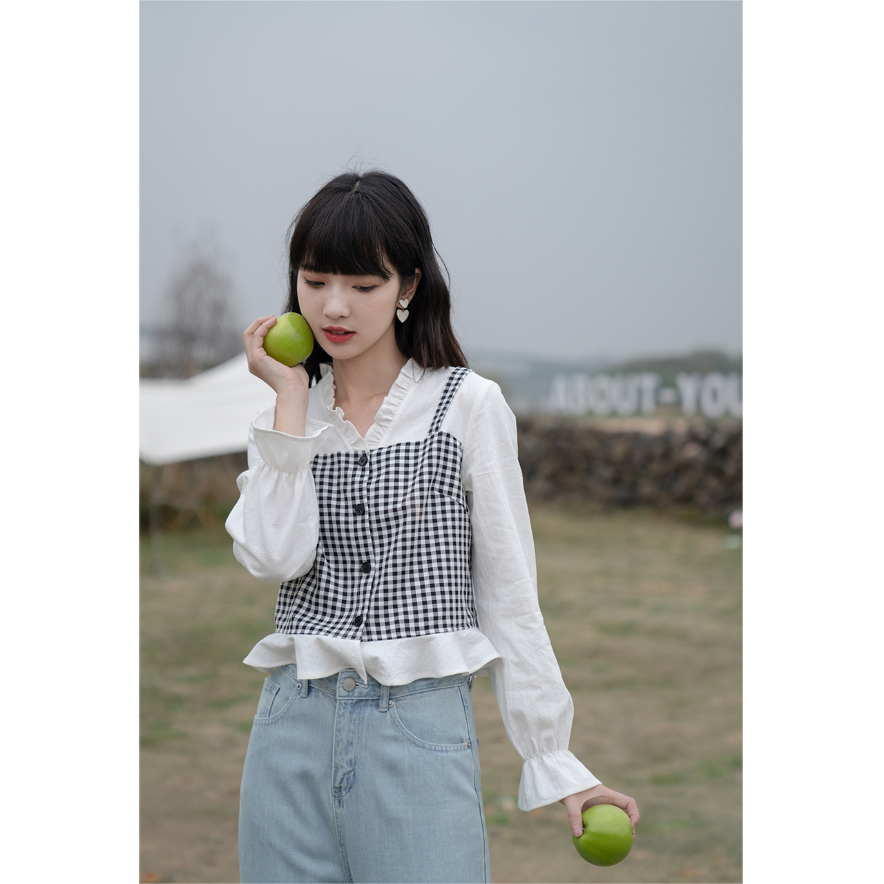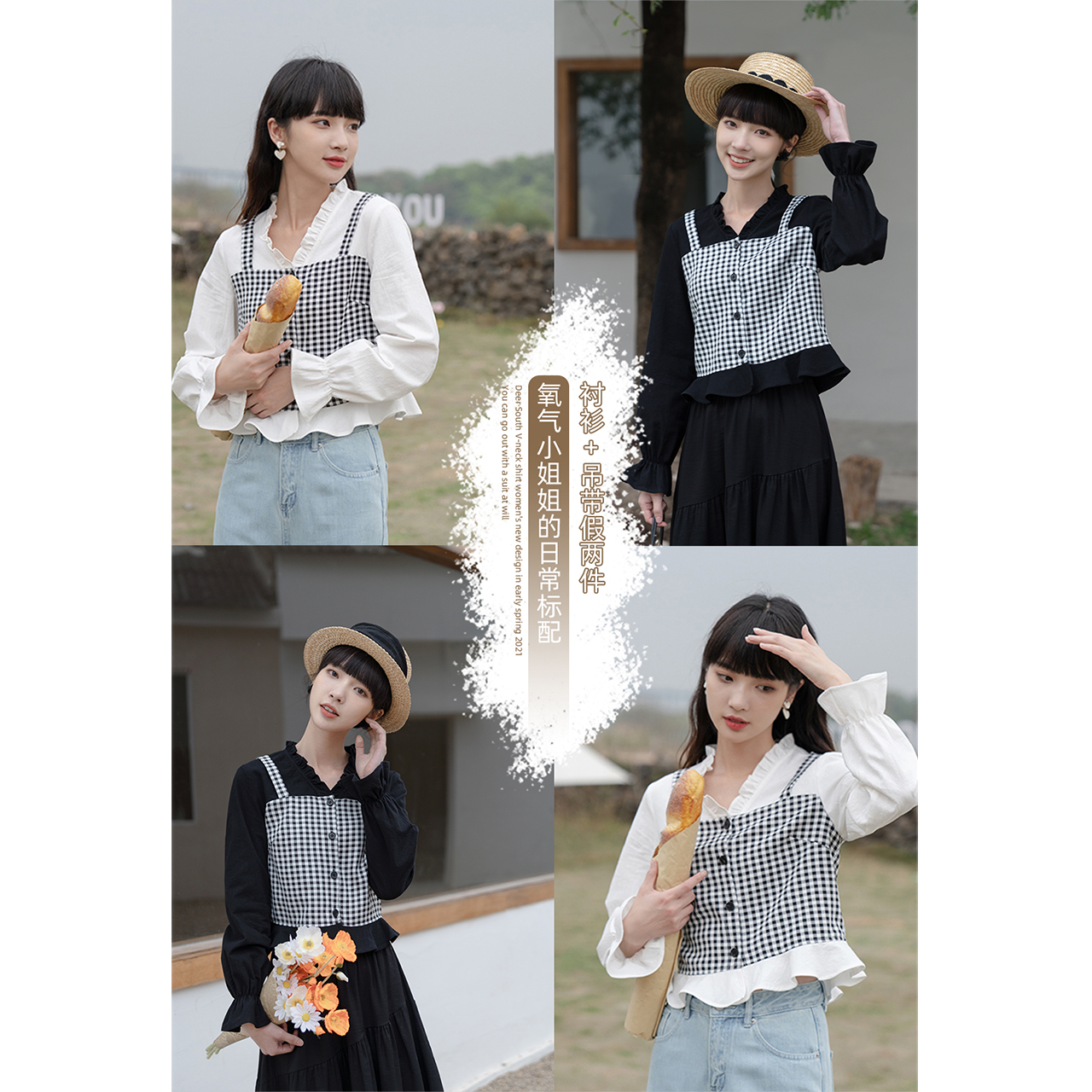 Deer Southward V Collar Plaid Shirt Woman New 2022 Spring Design Sensation Little Crowdwear two sweet blouses