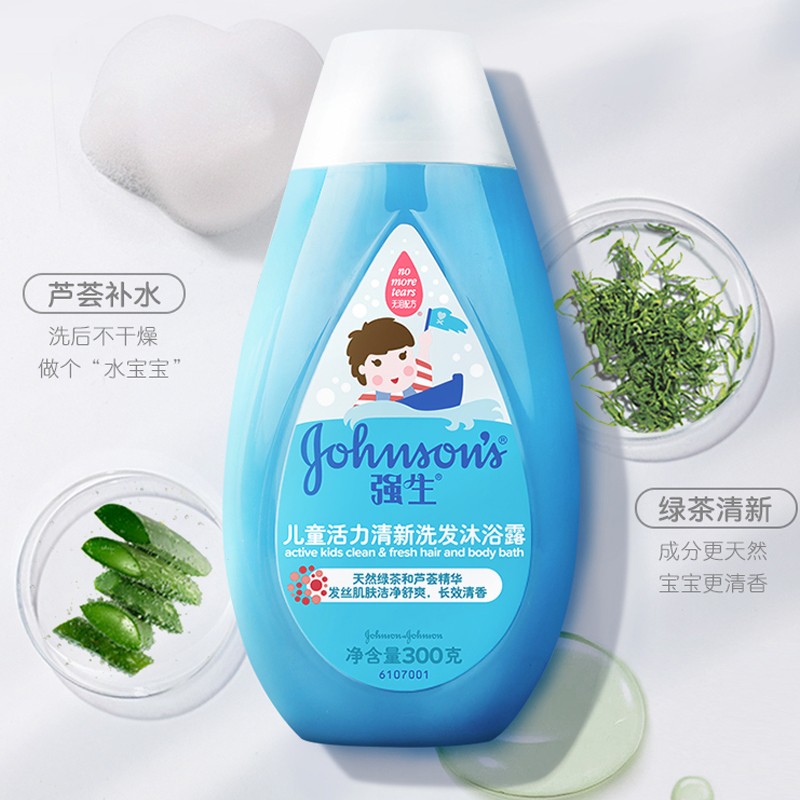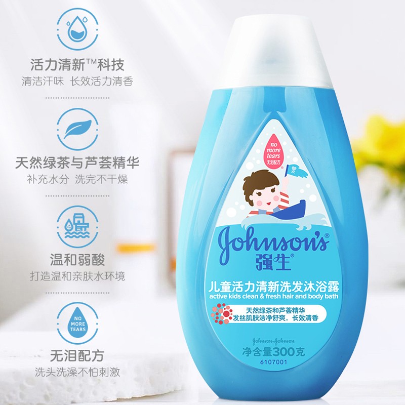 Johnson's baby 300g mild tear-free formula cleans and refreshes children's vitality fresh shampoo and body wash two-in-one