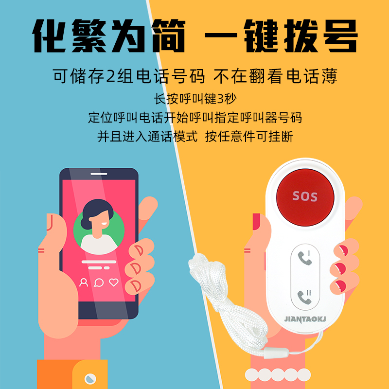 Elderly Pager One-Touch Dial SOS Distress Alarm Living Alone Elderly Safety Bell Wireless Voice Long Distance Positioning Mobile Phone Room Patient Care Bell Bedside Emergency Call Bell