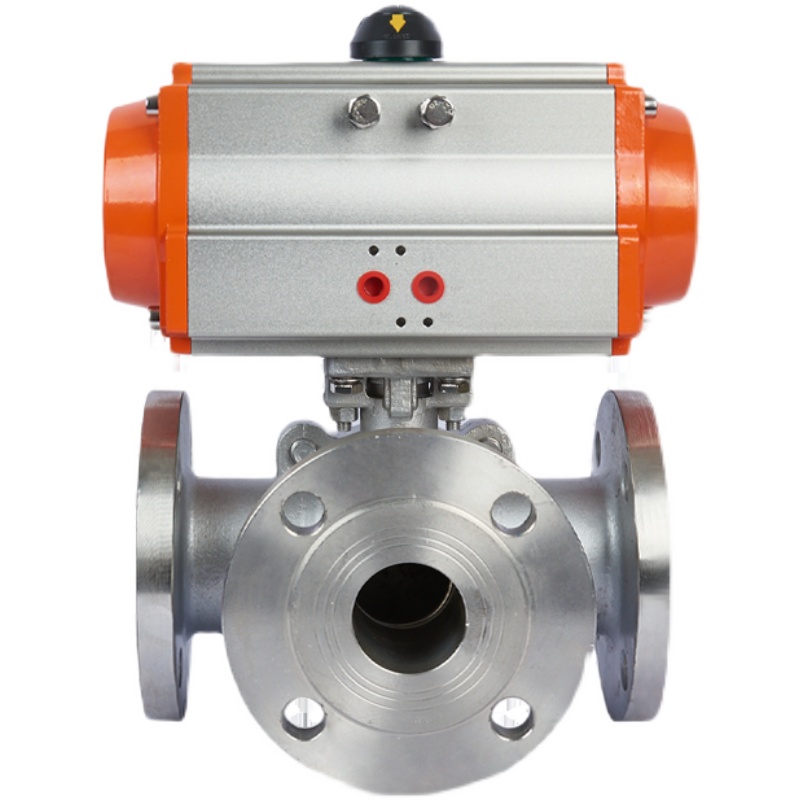 Pneumatic three-way flange ball valve Q644F-16P stainless steel pneumatic three-way valve T type dn15 20 25 32