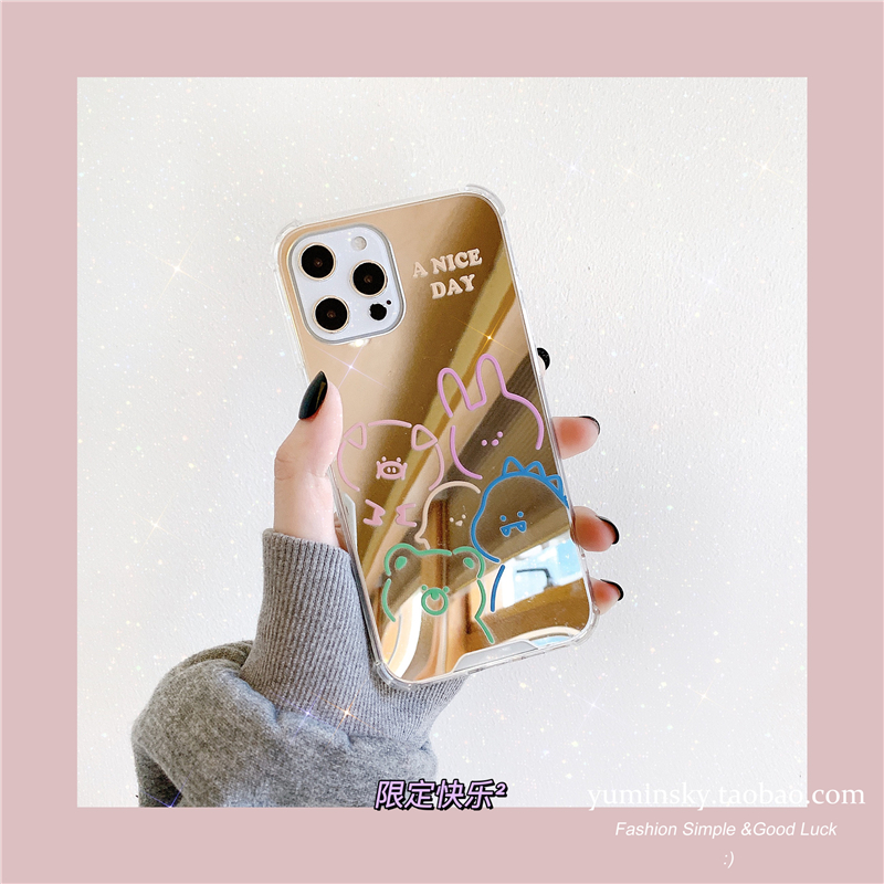 Makeup mirror small animals are suitable for iPhone13 14ProMax Apple 12 mobile phone case plus cartoon xs 11 sets 14Pro net red new 13Pro cute
