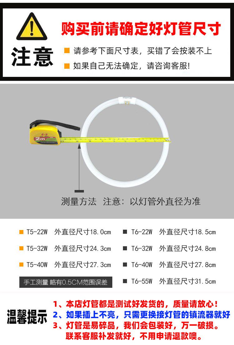 Ring lighting tube home t5t6 round suction top light tube four-pin tricolour white light 22W32W40W55W energy saving lamp