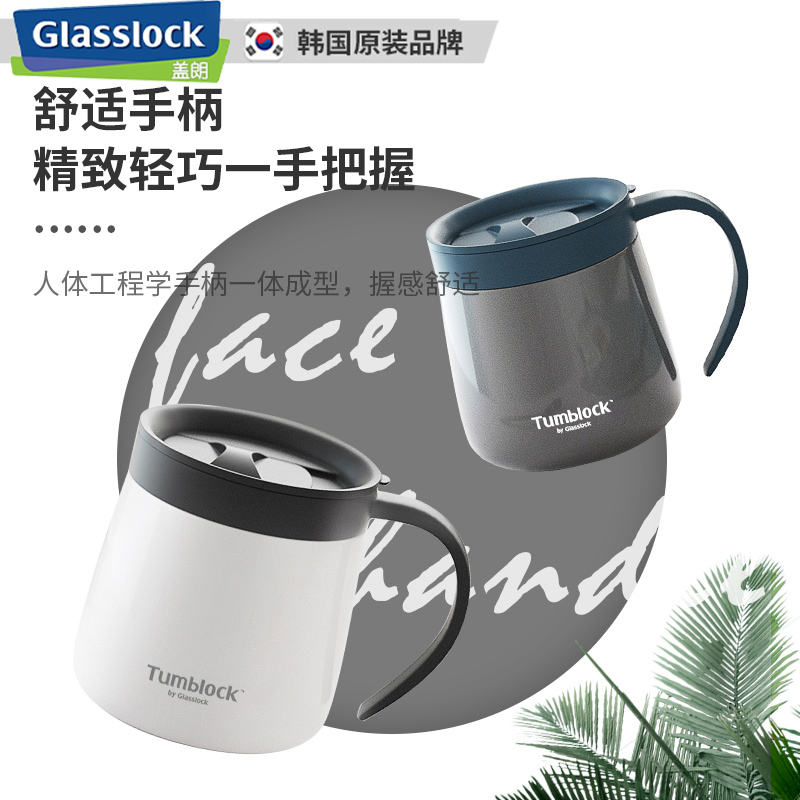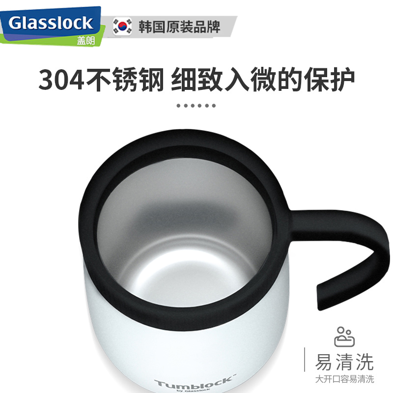 Glasslock insulated coffee cup Boys and girls Home Office Water Cup 304 Stainless Steel Mug with Lid
