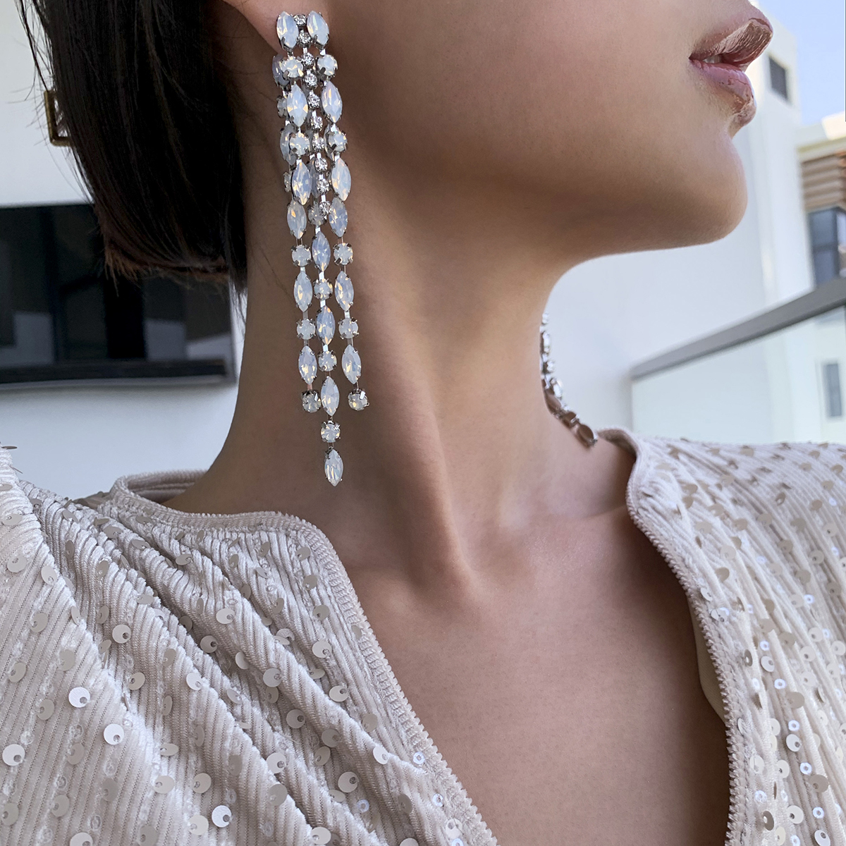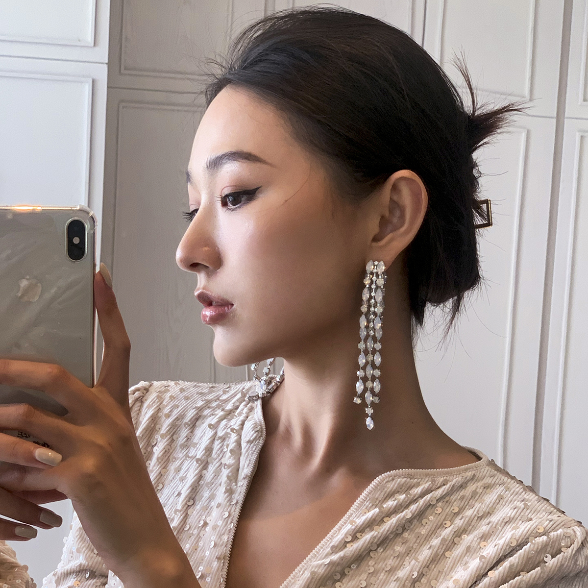 BOONEE high-end sense smart exquisite diamond chain tassel long earring temperament thin earrings 925 silver earrings for women